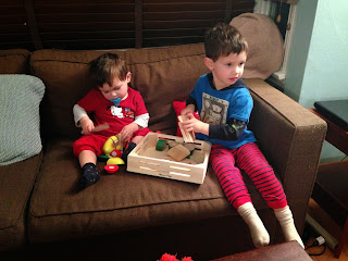 We also exchanged gifts, much to Simon's delight! Both boys got some cute clothes, and Matt and I got some great gifts too. Simon was really excited to receive a super cool Batcave that he's been talking about, which prompted him asking to wear his Batman costume for the rest of the weekend.